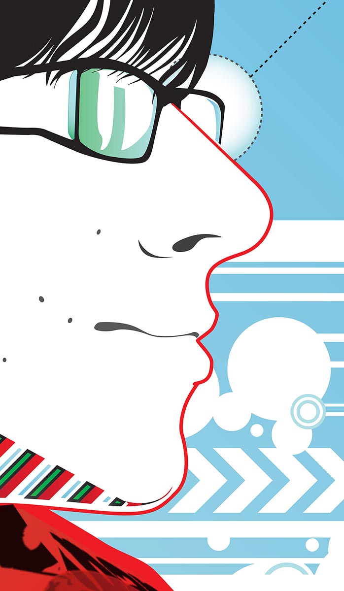 Details of clothes and some objects are reinterpreted with precision by vectorial shape and some photoshop layers, as the effect of green laser beam.
